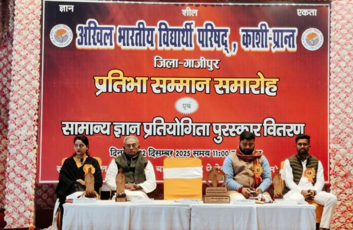 ग़ाज़ीपुर: अखिल भारतीय विद्यार्थी परिषद (अभाविप) ग़ाज़ीपुर के तत्वावधान में नगर स्थित रॉयल पैलेस में प्रतिभा सम्मान समारोह का भव्य आयोजन किया गया। कार्यक्रम में विभिन्न विद्यालयों के लगभग 600 से अधिक मेधावी विद्यार्थियों को मंच से सम्मानित किया गया। समारोह में विद्यार्थियों के उत्साह और अभिभावकों की प्रसन्नता देखते ही बन रही थी।