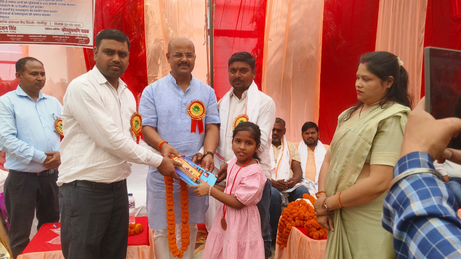 गाजीपुर – बिरनो बीआरसी परिसर में समग्र शिक्षा अभियान के तहत ग्राम प्रधानों व शिक्षकों का ब्लॉक स्तरीय उन्मुखीकरण कार्यक्रम स्थानीय बीआरसी परिसर में आयोजित किया गया। कार्यक्रम के मुख्य अतिथि राजन सिंह रहे। कार्यक्रम का शुभारंभ मां सरस्वती के चित्र पर दीप प्रज्वलन एवं पुष्पांजलि अर्पित कर किया गया।
