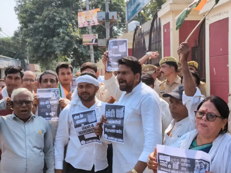 गाज़ीपुर। कांग्रेस पार्टी के कार्यकर्ताओं ने गुरुवार को जिला मुख्यालय पर आरएसएस के खिलाफ जोरदार विरोध प्रदर्शन किया। प्रदर्शनकारी जिलाधिकारी कार्यालय के सामने जमकर नारेबाजी करते हुए पहुंचे और राष्ट्रपति को संबोधित एक ज्ञापन जिलाधिकारी के माध्यम से सौंपा।कांग्रेस कार्यकर्ताओं का आरोप है कि केरल में आरएसएस के एक कैंप में सॉफ्टवेयर इंजीनियर आनंदू अजी के साथ यौन उत्पीड़न की घटना हुई, जिसके बाद उन्होंने कथित तौर पर आत्महत्या कर ली। कांग्रेस ने इसे गंभीर आपराधिक कृत्य बताया और आरोपी आरएसएस नेताओं तथा संबंधित पदाधिकारियों के खिलाफ कड़ी और निष्पक्ष जांच की मांग की।प्रदर्शन में शामिल कांग्रेस नेताओं ने कहा कि यह घटना न केवल पीड़ित के लिए बल्कि समाज के लिए भी चिंता का विषय है। उन्होंने कहा कि दोषियों को बख्शा नहीं जाना चाहिए और न्याय मिलने तक उनकी आवाज़ लगातार उठती रहेगी।प्रदर्शन के दौरान पुलिस ने नारेबाजी कर रहे कई कांग्रेस कार्यकर्ताओं को अस्थायी रूप से हिरासत में लिया, जिन्हें बाद में छोड़ दिया गया। कांग्रेस नेताओं ने इस दौरान कहा कि वे कानून के माध्यम से न्याय की पूरी प्रक्रिया का पालन करेंगे और दोषियों के खिलाफ सख्त कार्रवाई की मांग करते रहेंगे।इस प्रदर्शन ने गाज़ीपुर में राजनीतिक माहौल को गर्मा दिया है और समाज में महिलाओं और युवाओं के खिलाफ अपराधों के प्रति चिंता को बढ़ा दिया है। कांग्रेस ने प्रशासन से भी आग्रह किया कि पीड़ित पक्ष को न्याय सुनिश्चित किया जाए और इस प्रकार की घटनाओं की पुनरावृत्ति रोकने के लिए प्रभावी कदम उठाए जाएं।कुल मिलाकर, गाज़ीपुर में यह विरोध प्रदर्शन न्याय और सुरक्षा के मुद्दों को लेकर कांग्रेस की संवेदनशीलता और आरएसएस पर चिंता को दर्शाता है।