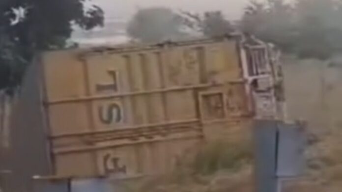 गाजीपुर – मरदह थाना क्षेत्र के पास पूर्वांचल एक्सप्रेसवे पर रविवार सुबह एक बड़ा हादसा हो गया। गुड़गांव से पटना जा रहा कूरियर कंटेनर ट्रक डोड़सर गांव के नजदीक 297 किलोमीटर पर अनियंत्रित होकर करीब 25 फीट गहरी खाई में पलट गया। दुर्घटना सुबह लगभग 6:30 बजे हुई।ट्रक के आगे के टायर अचानक फटने से चालक ने वाहन पर नियंत्रण खो दिया। इसके बाद ट्रक एक्सप्रेसवे की रेलिंग तोड़ते हुए तेज़ी से खाई में जा गिरा। हादसे की भयावहता को देखकर स्थानीय लोग मौके की ओर दौड़े, लेकिन राहत की बात यह रही कि ट्रक में सवार चालक और खलासी दोनों बिना किसी चोट सुरक्षित बाहर निकल आए।दुर्घटना में हाईवे की लगभग 40 मीटर लंबी रेलिंग क्षतिग्रस्त हो गई, जिससे एक्सप्रेसवे प्रबंधन को बड़ा नुकसान हुआ। हालांकि ट्रक के कंटेनर में रखा कूरियर सामान पूरी तरह सुरक्षित बताया जा रहा है। ट्रक चालक ने जानकारी दी कि सामान को समय पर गंतव्य तक पहुंचाने के लिए दूसरी गाड़ी की व्यवस्था की जा रही है।