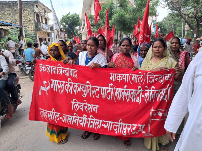 गाजीपुर। प्रदेश में बढ़ते पुलिस-अपराधी गठजोड़, तहसील स्तर पर व्याप्त भ्रष्टाचार, और किसानों-मजदूरों की समस्याओं के खिलाफ भाकपा-माले (भारतीय कम्युनिस्ट पार्टी–माले) ने गुरुवार को जखनियां तहसील पर जोरदार प्रदर्शन किया। इस प्रदर्शन की शुरुआत बहरियाबाद से जुलूस निकालकर की गई, जो नारों और बैनरों के साथ तहसील मुख्यालय पहुंचा।