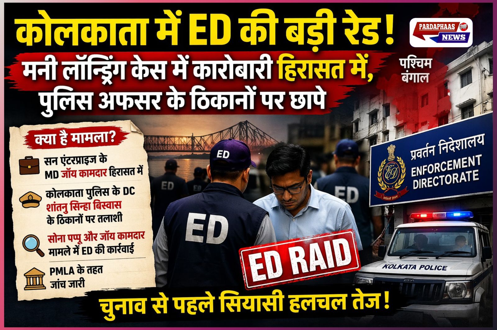 पश्चिम बंगाल विधानसभा चुनाव 2026 से ठीक पहले प्रवर्तन निदेशालय (ED) ने कोलकाता में मनी लॉन्ड्रिंग मामले में बड़ी कार्रवाई करते हुए कई ठिकानों पर छापेमारी की है। इस दौरान ‘सन एंटरप्राइज’ के प्रबंध निदेशक जॉय कामदार को हिरासत में लिया गया, जबकि कोलकाता पुलिस के डिप्टी कमिश्नर शांतनु सिन्हा बिस्वास से जुड़े ठिकानों पर तलाशी अभियान चलाया गया।
