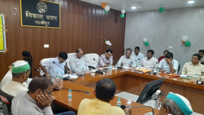 गाजीपुर – विकास भवन के सभागार में मंगलवार को किसान दिवस का आयोजन किया गया। इस महत्वपूर्ण बैठक की अध्यक्षता अपर जिलाधिकारी वि0रा0 दिनेश कुमार एवं मुख्य राजस्व अधिकारी द्वारा संयुक्त रूप से की गई। बैठक में जनपद के विभिन्न विकास खण्डों से आए प्रगतिशील किसानों के साथ कृषि, पशुपालन, सिंचाई, विद्युत, राजस्व समेत कई विभागों के अधिकारी व कर्मचारी उपस्थित रहे।