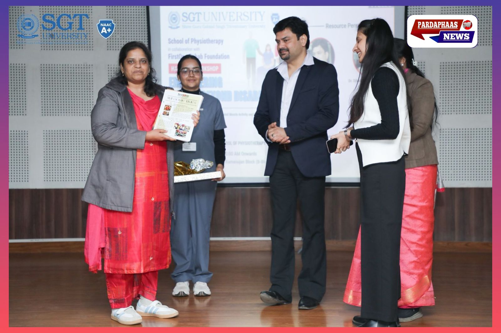 कार्यक्रम के समापन पर SGT यूनिवर्सिटी की ओर से FirstOne Rehab Foundation एवं उसकी टीम को उनके सराहनीय योगदान के लिए सम्मानित किया गया। फिजियोथेरेपी विभाग की डीन डॉ. पूजा आनंद द्वारा विशेष रूप से डॉ. महिपाल सिंह को सम्मान प्रदान किया गया।