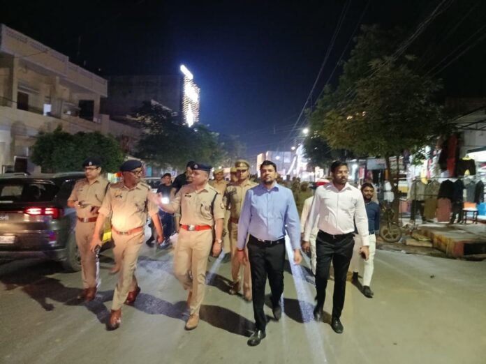 गाज़ीपुर। धनतेरस, दीपावली, छठ पूजा सहित आगामी त्यौहारों के मद्देनज़र जनपद में कानून व्यवस्था सुदृढ़ बनाए रखने के उद्देश्य से जिलाधिकारी अविनाश कुमार एवं पुलिस अधीक्षक डॉ. आर. राजा के नेतृत्व में पुलिस प्रशासन ने व्यापक स्तर पर फ्लैग मार्च और पैदल गश्त किया।यह फ्लैग मार्च थाना कोतवाली क्षेत्र के विश्वेश्वरगंज चौकी से प्रारंभ होकर मिश्र बाजार, लाल दरवाजा, टाउन हाल, चीतनाथ, नखास तिराहा, एमएएच इंटर कॉलेज, आलम पट्टी और रौजा जैसे प्रमुख बाजारों और चौराहों से होकर गुजरा। अधिकारियों ने इस दौरान क्षेत्र की सुरक्षा व्यवस्था का जायजा लिया और जनता में सुरक्षा का एहसास कराया।इसी क्रम में जिलाधिकारी और पुलिस अधीक्षक ने लंका मैदान स्थित आतिशबाजी बाजार का भी निरीक्षण किया। उन्होंने वहां सुरक्षा मानकों की बारीकी से जांच की और दुकानदारों को आवश्यक दिशा-निर्देश दिए।दोनों अधिकारियों ने अधिकारियों और कर्मचारियों को निर्देशित किया कि त्योहारों के दौरान शांति एवं कानून व्यवस्था हर हाल में कायम रहे। उन्होंने कहा कि किसी भी प्रकार की लापरवाही बर्दाश्त नहीं की जाएगी और सतर्कता के साथ जनता की सुरक्षा सुनिश्चित की जाए।इस दौरान अपर पुलिस अधीक्षक नगर, उपजिलाधिकारी सदर, क्षेत्राधिकारी नगर, प्रभारी निरीक्षक कोतवाली समेत पुलिस बल के अन्य अधिकारी व कर्मचारी भी मौजूद रहे। पूरा आयोजन लोगों में विश्वास और सुरक्षा की भावना को सशक्त करने के उद्देश्य से किया गया।
