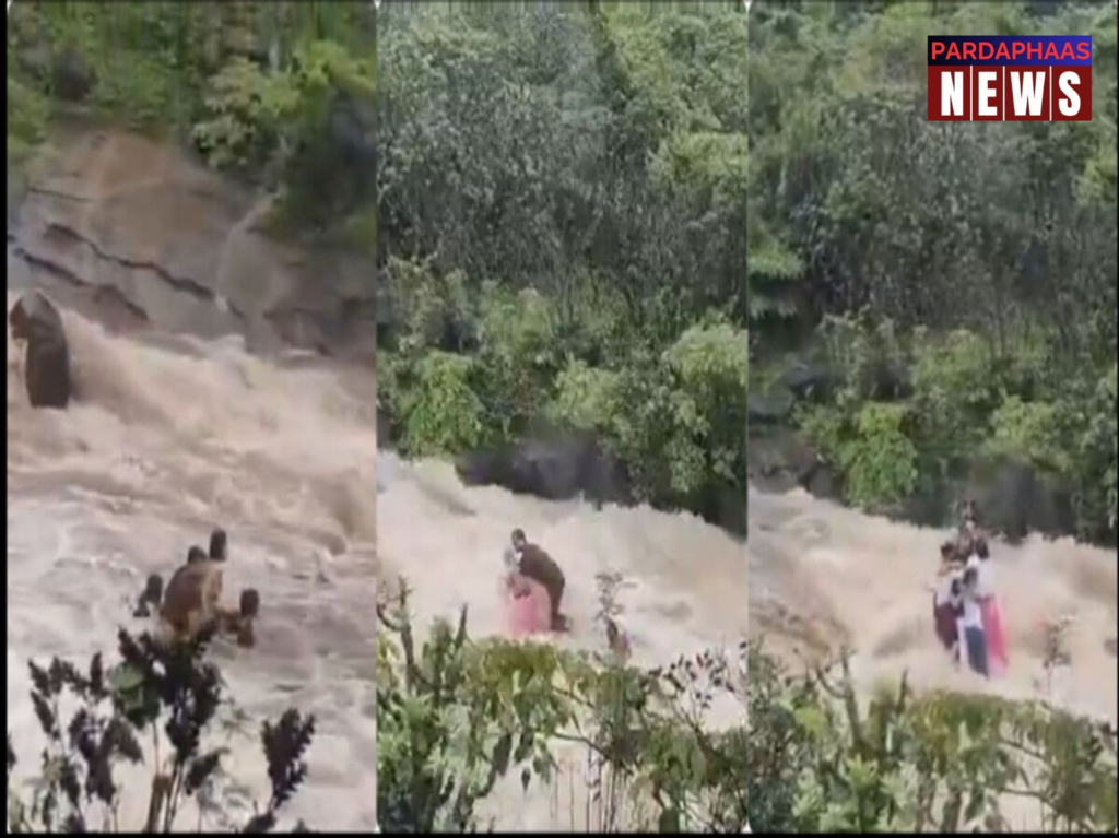 कुछ ही क्षणों में परिवार के सदस्य एक-एक करके पानी में बह गए। मौके पर चीख-पुकार मच गई। वीडियो में देखा जा सकता है कि तेज धाराओं की वजह से वे सभी एक-दूसरे से बिछड़ गए और एक-एक करके पानी में बहते चले गए।