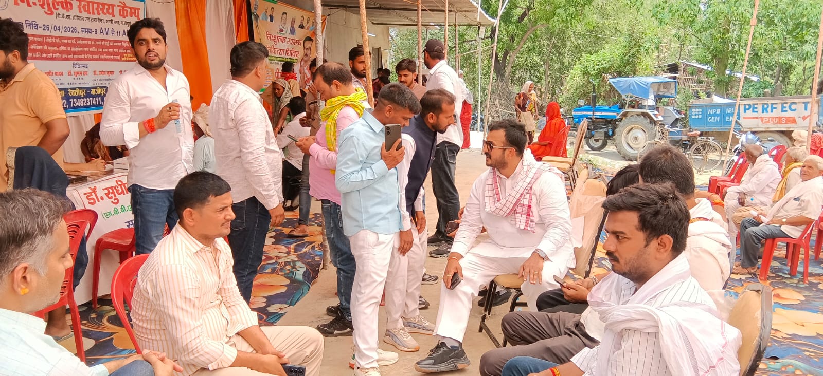 गाजीपुर – नगदीलपुर स्थित सब्जी मंडी परिसर में रविवार को पूर्व विधायक कृष्णानंद राय की स्मृति में एक विशाल नि:शुल्क स्वास्थ्य परीक्षण एवं दवा वितरण शिविर का आयोजन किया गया। इस जनकल्याणकारी शिविर का शुभारंभ युवा भाजपा नेता पीयूष राय ने फीता काटकर किया। कार्यक्रम में आसपास के ग्रामीण क्षेत्रों से बड़ी संख्या में लोग पहुंचे और विशेषज्ञ चिकित्सकों से स्वास्थ्य जांच कराकर लाभान्वित हुए।