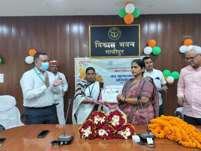 गाजीपुर। मिशन शक्ति-5.0 के अंतर्गत महिला सशक्तिकरण और स्वास्थ्य क्षेत्र में उत्कृष्ट योगदान देने वाली महिला चिकित्सक, एएनएम, सामुदायिक स्वास्थ्य अधिकारी, आशा संगिनी और आशाओं के लिए गाजीपुर के विकास भवन सभागार में विशेष कार्यशाला और गोष्ठी का आयोजन किया गया। कार्यक्रम की अध्यक्षता श्रीमती अनीता देवी, सभासद नगर पालिका गाजीपुर ने की और उन्होंने मुख्य अतिथि के रूप में कार्यक्रम का शुभारंभ किया।मुख्य चिकित्सा अधिकारी डॉ. सुनील पांडे ने श्रीमती अनीता देवी का पुष्प गुच्छ देकर सम्मानित किया और विभागीय कार्यक्रमों तथा स्वास्थ्य योजनाओं की विस्तृत जानकारी साझा की। कार्यक्रम में स्वास्थ्य विभाग के अंतर्गत उत्कृष्ट सेवा देने वाली चिकित्सक डॉ. ईशानी वर्धन, एएनएम सरोज राजभर, रितु सिंह, सीमा देवी तथा आशा संगिनी और अन्य आशाओं को प्रशस्ति पत्र देकर सम्मानित किया गया। इस मौके पर उनके कार्यों की सराहना की गई और महिला स्वास्थ्य एवं सशक्तिकरण के महत्व पर चर्चा की गई।कार्यक्रम के दौरान महिला कल्याण विभाग द्वारा पर्सनल सेफ्टी और महिला जागरूकता पर आधारित विशेष अवेयरनेस सत्र भी आयोजित किया गया, जिसमें महिलाओं को अपने अधिकारों, सुरक्षा उपायों और स्वास्थ्य सेवाओं की जानकारी दी गई।इस अवसर पर मुख्य चिकित्सा अधिकारी डॉ. सुनील पांडे, अपर मुख्य चिकित्सा अधिकारी डॉ. मनोज कुमार, प्रभुनाथ डीपीएम, अशोक, अर्बन हेल्थ कोऑर्डिनेटर नेहा राय, लक्ष्मी मौर्य महिला कल्याण विभाग से, और स्वास्थ्य विभाग के समस्त अधिकारी-कर्मचारी मौजूद रहे। कार्यक्रम का उद्देश्य महिला स्वास्थ्य और सुरक्षा को बढ़ावा देना और स्वास्थ्य सेवाओं में सक्रिय योगदान देने वाली महिला कर्मियों को प्रोत्साहित करना था।इस कार्यक्रम से मिशन शक्ति-5.0 के तहत महिलाओं के स्वास्थ्य, सुरक्षा और सशक्तिकरण को मजबूत बनाने की दिशा में एक महत्वपूर्ण कदम उठाया गया।