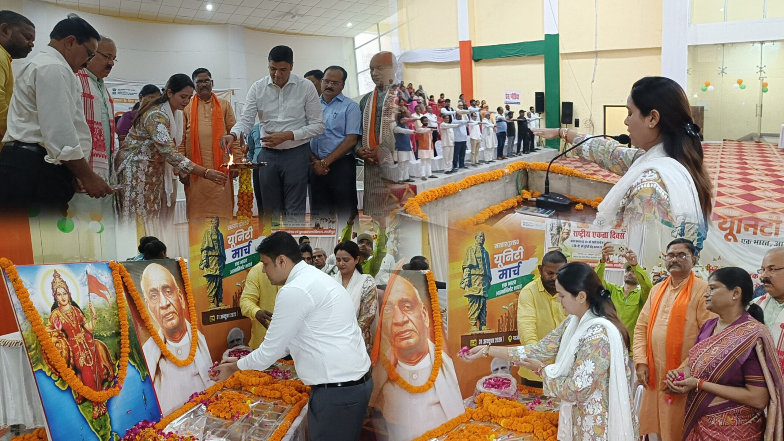 गाज़ीपुर – लौह पुरुष भारत रत्न सरदार वल्लभभाई पटेल की 150वीं जयंती और राष्ट्रीय एकता दिवस के अवसर पर “सरदार 150 – एक भारत आत्मनिर्भर भारत” अभियान के तहत भव्य कार्यक्रम आयोजित किए गए। विकास भवन ऑडिटोरियम में मुख्य अतिथि जिला पंचायत अध्यक्ष सपना सिंह, नगर पालिका अध्यक्ष सरिता अग्रवाल, जिलाधिकारी अविनाश कुमार और मुख्य विकास अधिकारी संतोष कुमार वैश्य ने दीप प्रज्वलित कर कार्यक्रम का शुभारंभ किया।सपना सिंह ने कहा कि सरदार पटेल ने खंड-खंड भारत को एक सूत्र में पिरोकर अखंड भारत का निर्माण किया और 500 से अधिक रियासतों का एकीकरण कर “लौह पुरुष” की उपाधि प्राप्त की। सरिता अग्रवाल ने कहा कि पटेल जी की अदम्य नेतृत्व क्षमता ने भारत को एकता के सूत्र में बाँधा और अब हमें उनके सपनों का विकसित भारत बनाना है। जिलाधिकारी अविनाश कुमार ने कहा कि अगर सरदार पटेल न होते तो आज भारत एक नहीं होता। उन्होंने युवाओं से उनके आदर्शों को जीवन में अपनाने की अपील की।कार्यक्रम में देशभक्ति गीत, नाटिका और लोकनृत्य प्रस्तुत किए गए। हाकी, फुटबॉल और खो-खो में उत्कृष्ट प्रदर्शन करने वाले खिलाड़ियों को सम्मानित किया गया। “मेरा युवा भारत” के उपनिदेशक कपिल देव ने अतिथियों का स्वागत किया और धन्यवाद ज्ञापन जिला युवा कल्याण अधिकारी दिलीप कुमार ने किया। इस अवसर पर विशाल पदयात्रा का आयोजन हुआ, जिसे सपना सिंह ने हरी झंडी दिखाकर रवाना किया। कार्यक्रम में प्रशासनिक अधिकारी, शिक्षक, स्वयंसेवक और छात्र-छात्राएं बड़ी संख्या में उपस्थित रहे।