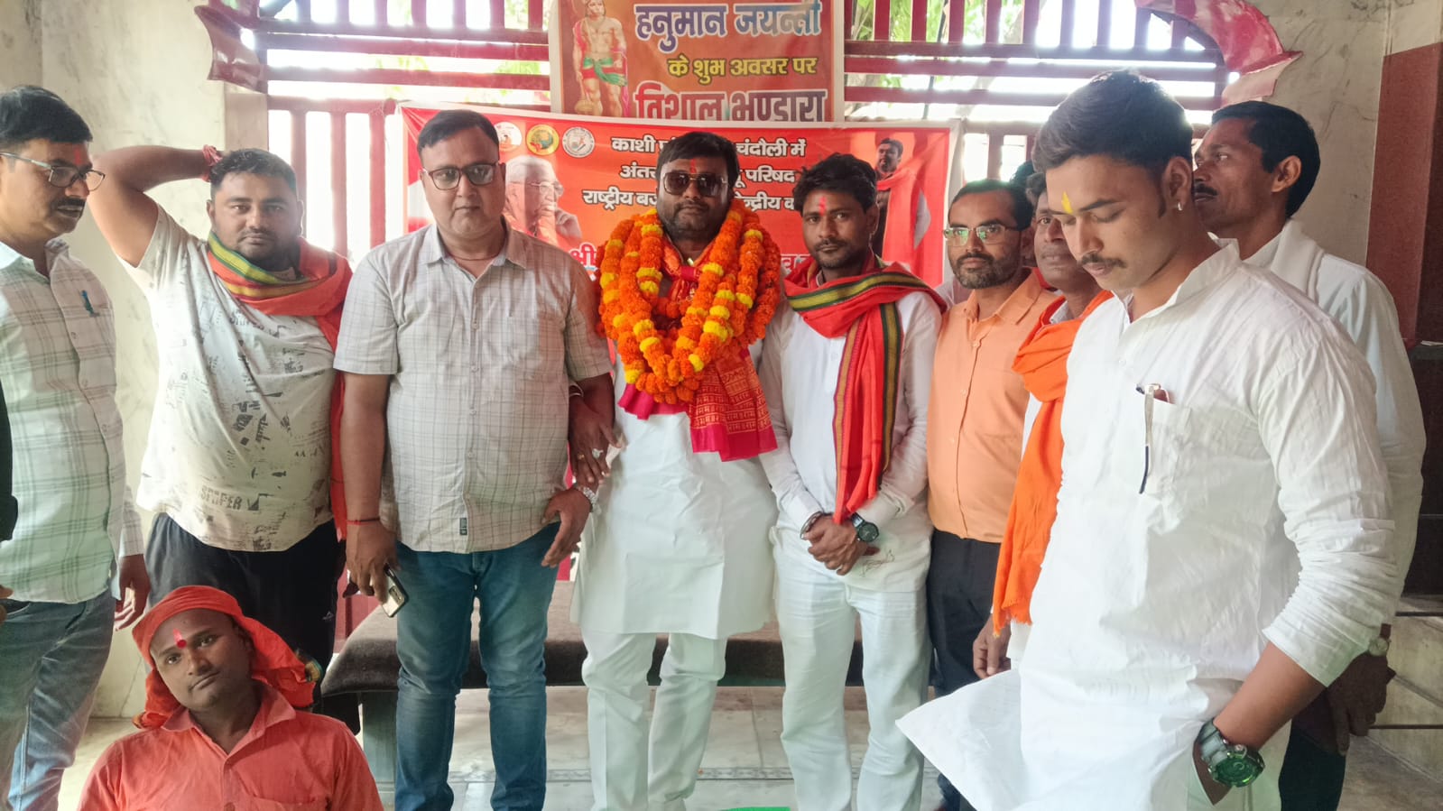 गाज़ीपुर। रविवार को अंतरराष्ट्रीय हिंदू परिषद राष्ट्रीय बजरंग दल गाज़ीपुर द्वारा गोराबाजार स्थित हनुमान मंदिर परिसर में स्वागत एवं सम्मान समारोह का आयोजन किया गया। यह कार्यक्रम दुर्गेश श्रीवास्तव को काशी प्रांत का प्रांतीय मंत्री बनाए जाने के उपलक्ष्य में आयोजित किया गया। समारोह में उन्हें फूल-मालाओं एवं अंगवस्त्र देकर सम्मानित किया गया।