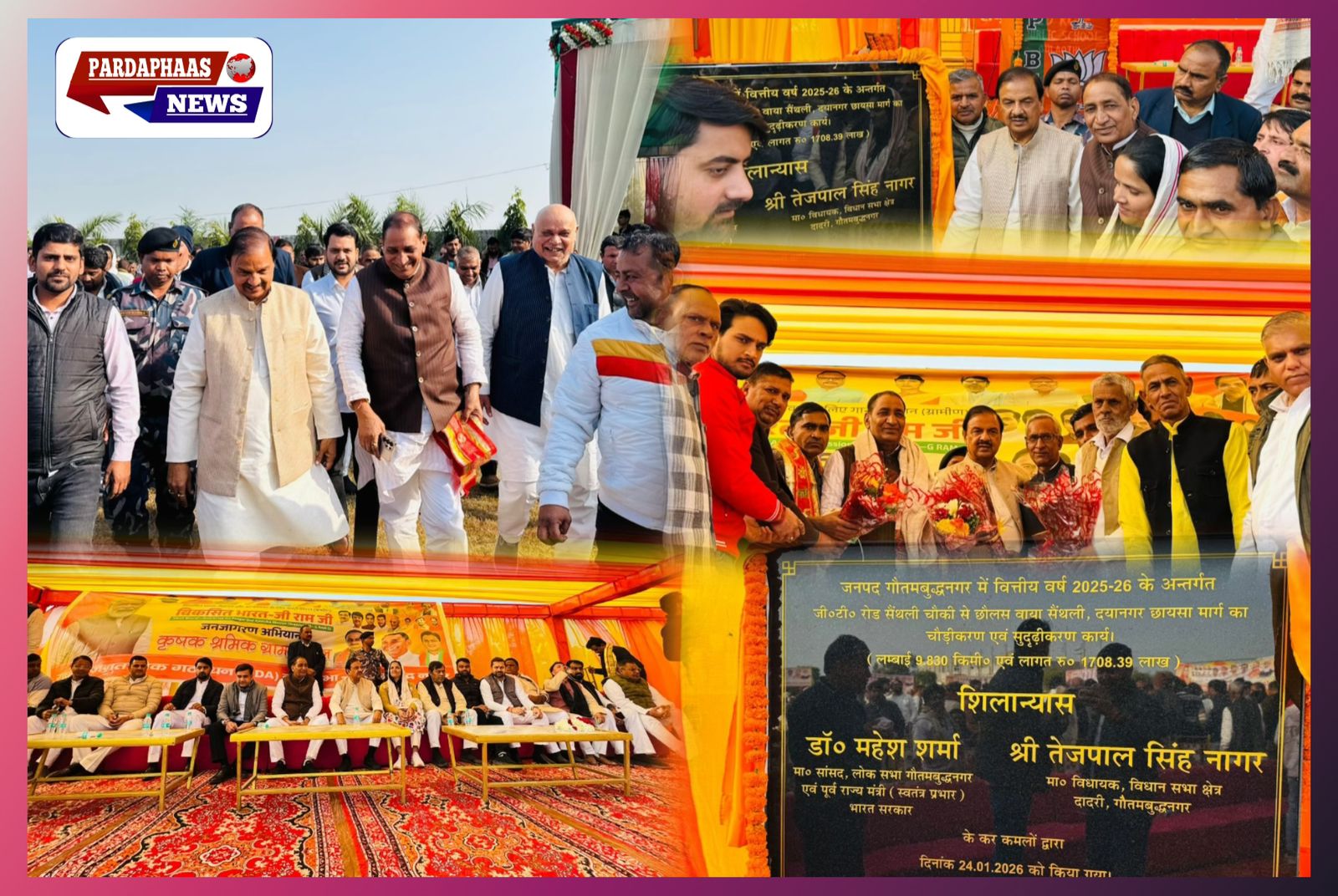 दादरी विधानसभा क्षेत्र में आज विकास की दिशा में एक ऐतिहासिक दिन दर्ज हुआ, जब गौतमबुद्ध नगर के सांसद डॉ. महेश शर्मा और दादरी के विधायक तेजपाल सिंह नागर ने कुल ₹1871.65 लाख की लागत से बनने वाली महत्वपूर्ण सड़क विकास परियोजनाओं का विधिवत शिलान्यास किया। यह कार्यक्रम केवल सड़क निर्माण तक सीमित नहीं रहा, बल्कि क्षेत्र के समग्र विकास, रोजगार सृजन और आत्मनिर्भर भारत के संकल्प को मजबूत करने का सशक्त मंच बना।