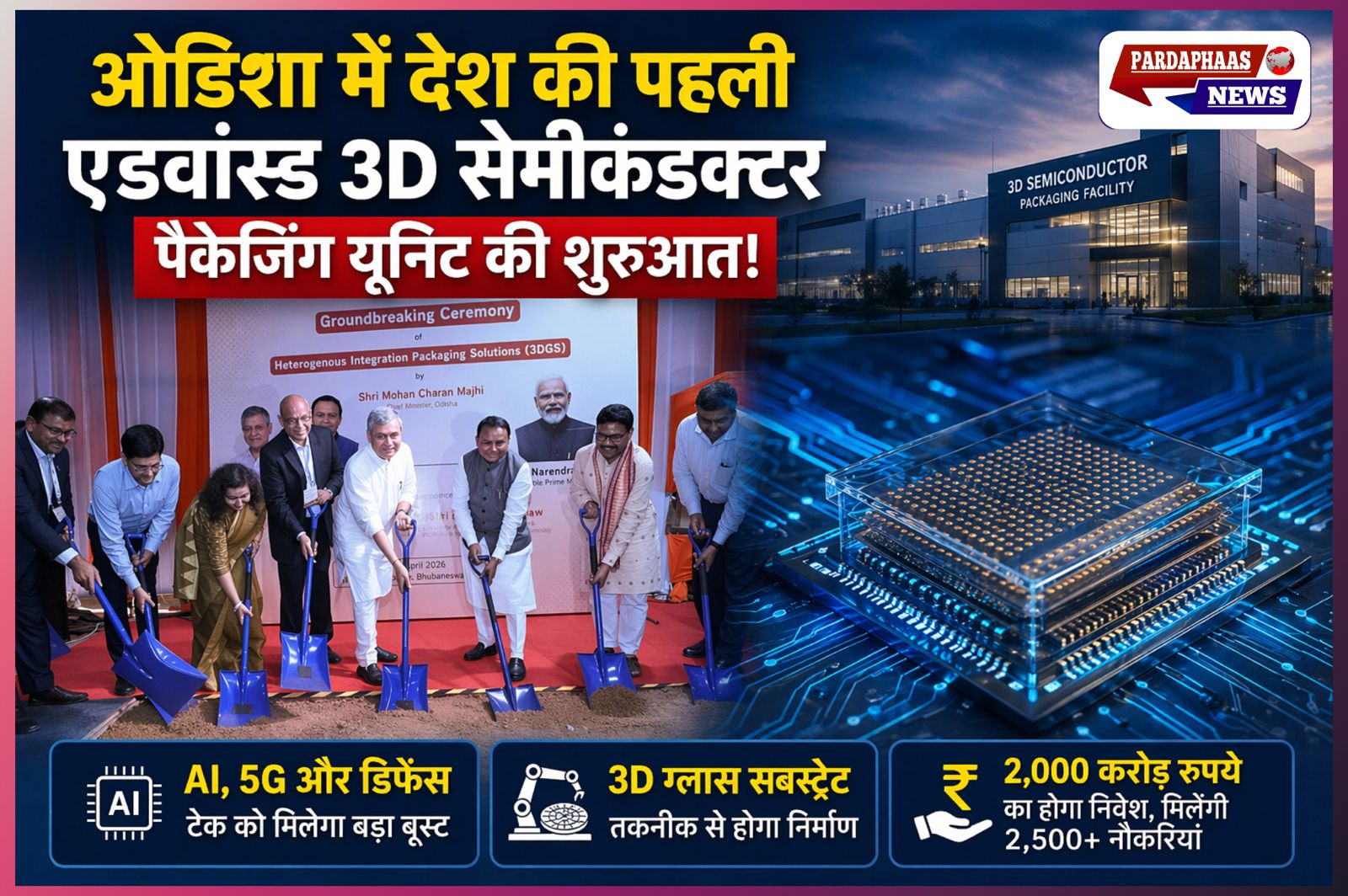ओडिशा की राजधानी भुवनेश्वर में रविवार को देश की पहली एडवांस्ड 3D सेमीकंडक्टर पैकेजिंग यूनिट की नींव रखी गई। यह परियोजना भारत के सेमीकंडक्टर इकोसिस्टम को मजबूत करने और उच्च तकनीक आधारित इलेक्ट्रॉनिक्स विनिर्माण को बढ़ावा देने की दिशा में एक महत्वपूर्ण कदम मानी जा रही है।