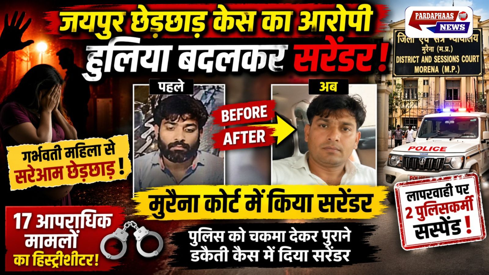 जयपुर/मुरैना :राजस्थान के जयपुर में गर्भवती महिला से छेड़छाड़ के मामले में फरार चल रहे आरोपी राहुल गुर्जर ने मध्यप्रदेश के मुरैना कोर्ट में सरेंडर कर दिया है। खास बात यह है कि उसने यह सरेंडर जयपुर के हालिया मामले में नहीं, बल्कि वर्ष 2018 के एक पुराने डकैती केस में किया, जिससे वह जयपुर पुलिस की गिरफ्त से बच सके।