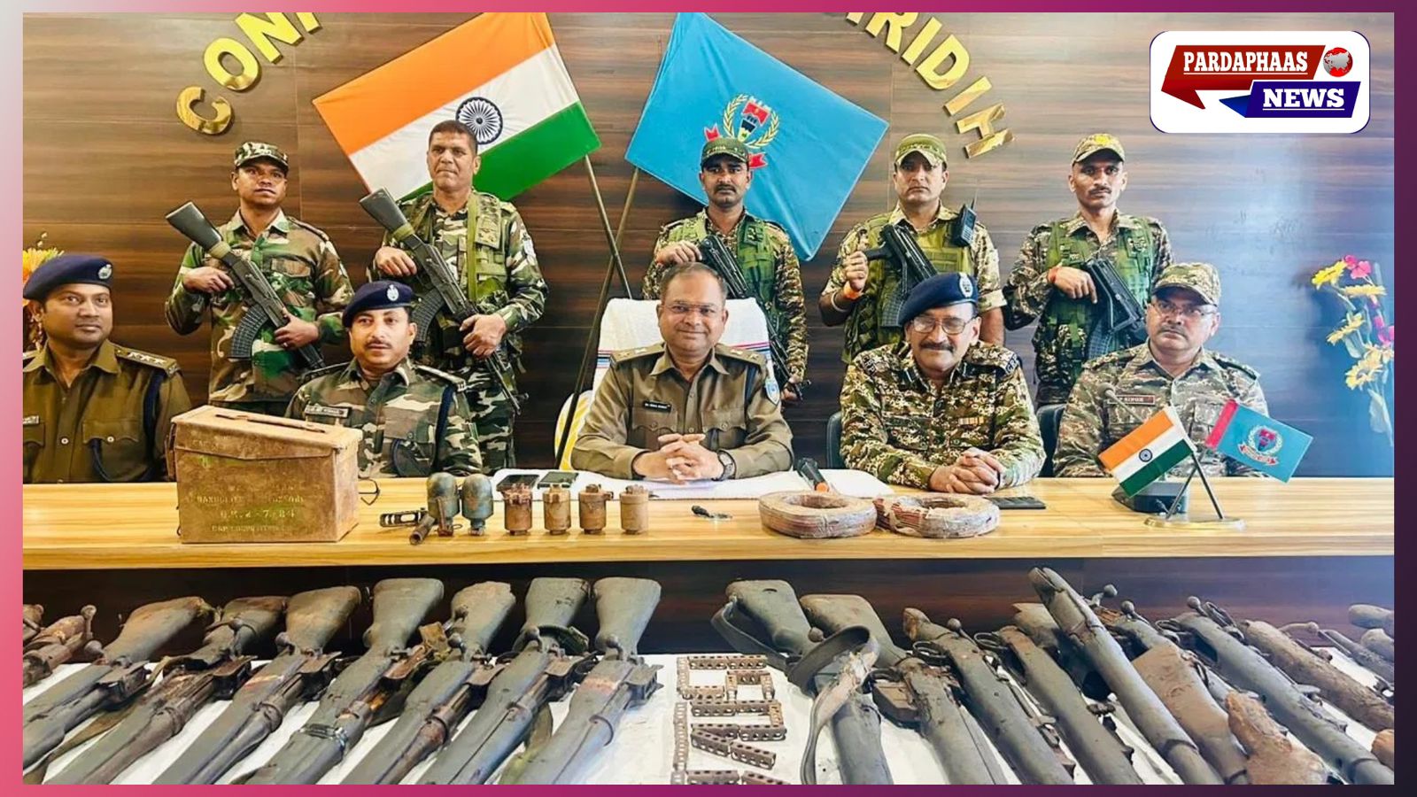 जॉइंट प्रेस कॉन्फ्रेंस में गिरिडीह एसपी डॉ. विमल कुमार, एएसपी सुरजीत कुमार, सीआरपीएफ कमांडेंट कुमार ओमप्रकाश सिंह और डीएसपी कोसर अली ने कार्रवाई की जानकारी दी। उन्होंने बताया कि सूचना मिलने के बाद तिहाड़ स्तर पर सर्च ऑपरेशन चलाया गया और बीडीडीएस टीम की सहायता से गड्डे में छिपाए गए सामान को निकाला गया।
