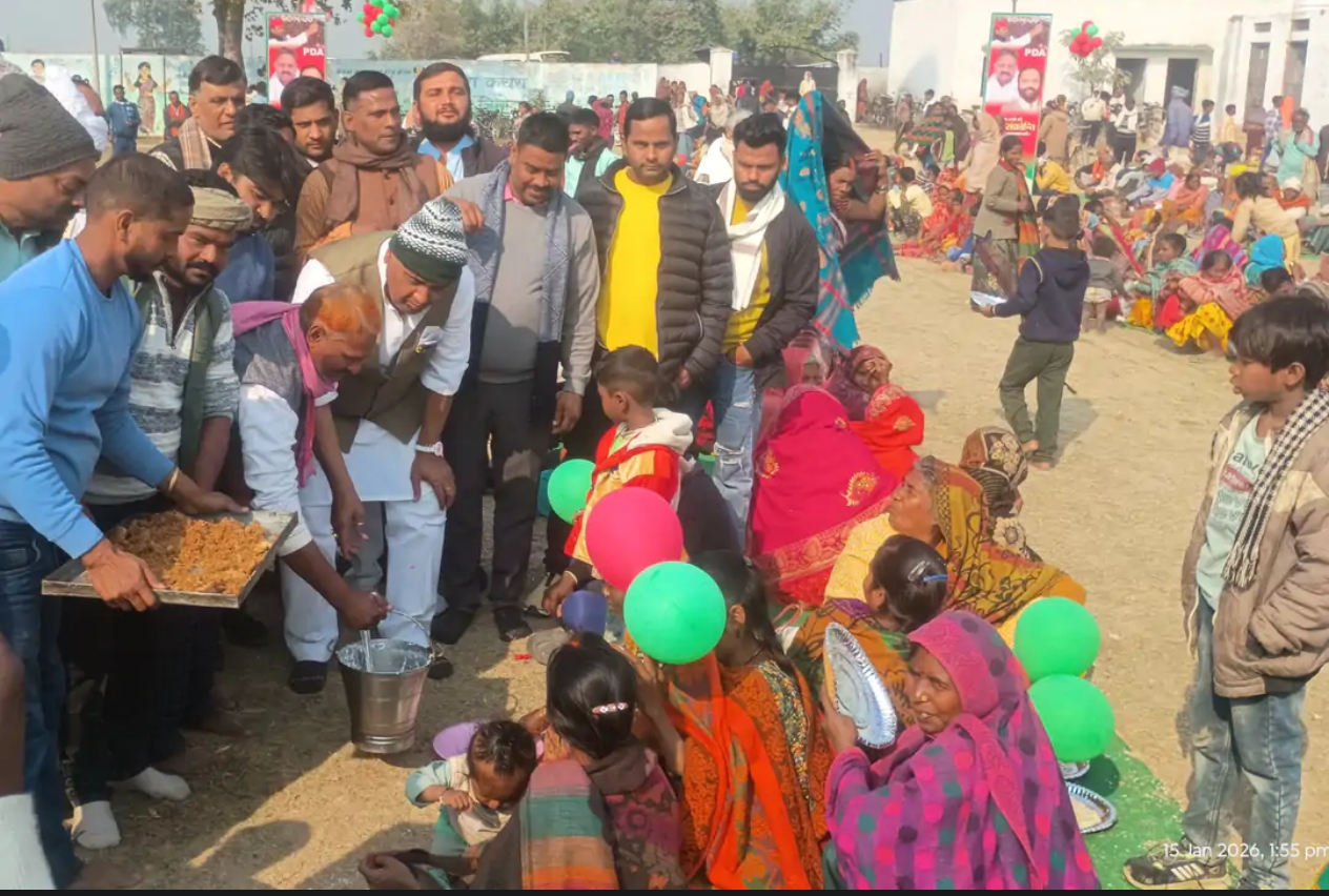 गाजीपुर – सेवराई क्षेत्र में मकर संक्रांति का पर्व इस बार सामाजिक समरसता और सेवा भाव के संदेश के साथ मनाया गया। पूर्व कैबिनेट मंत्री एवं जमानिया विधायक ओम प्रकाश सिंह ने अपने पैतृक गांव स्थित पूर्व माध्यमिक विद्यालय परिसर में दलित और वनवासी समाज के लोगों के साथ मकर संक्रांति का त्योहार मनाया। हर वर्ष की परंपरा को निभाते हुए इस बार भी करीब पाँच हजार से अधिक लोगों को दही-चूड़ा खिलाया गया। इसके साथ ही जरूरतमंदों के बीच कंबल वितरण किया गया तथा एक स्वास्थ्य शिविर का आयोजन भी किया गया, जिसमें लोगों की स्वास्थ्य जांच और परामर्श दिया गया।