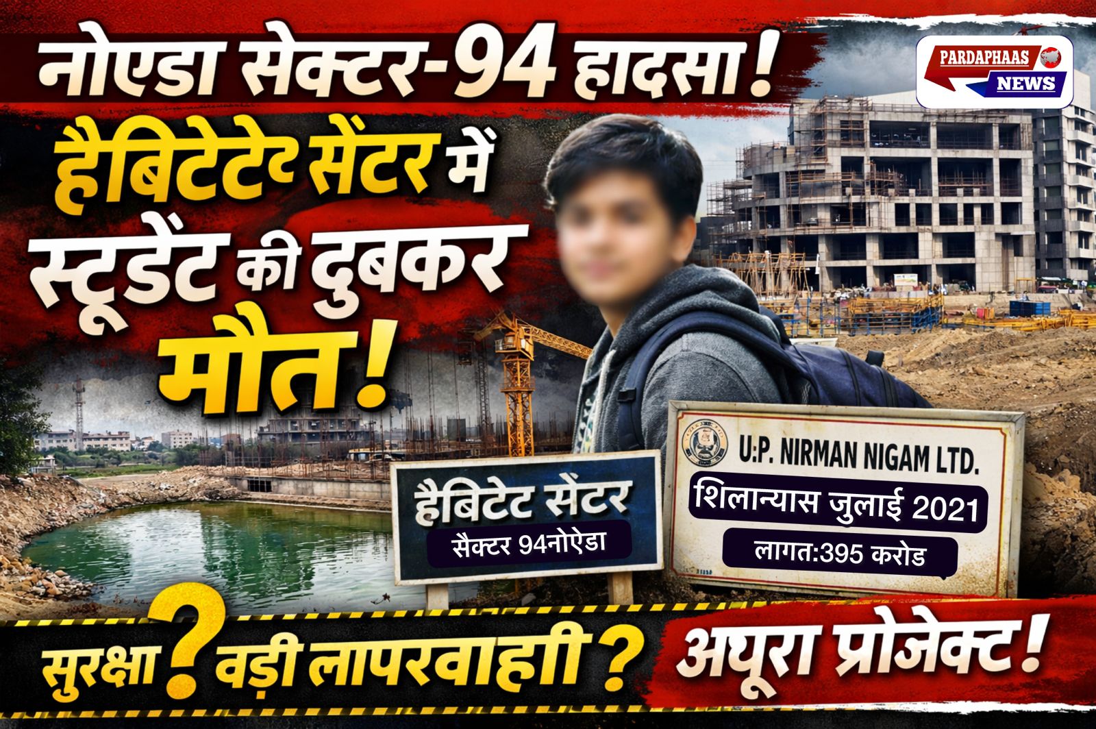 नोएडा के सेक्टर-94 में निर्माणाधीन ‘हैबिटेड सेंटर’ प्रोजेक्ट में एक छात्र की डूबकर मौत के बाद बड़ा विवाद खड़ा हो गया है। इस घटना ने न सिर्फ निर्माण कार्य की धीमी रफ्तार को उजागर किया है, बल्कि साइट पर सुरक्षा इंतजामों की गंभीर कमी पर भी कई सवाल खड़े कर दिए हैं।