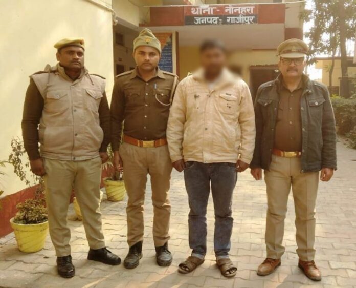 गाजीपुर। अपराध एवं अपराधियों के विरुद्ध चलाए जा रहे अभियान के तहत थाना नोनहरा पुलिस को बड़ी सफलता हाथ लगी है। पुलिस ने गोहत्या से संबंधित मामले में वांछित चल रहे अभियुक्त को गिरफ्तार कर लिया है। यह कार्रवाई उपनिरीक्षक अजय कुमार सिंह ने अपनी टीम के साथ की।