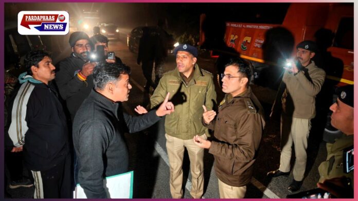 शिमला। हिमाचल प्रदेश की राजधानी शिमला में बुधवार रात दिल्ली पुलिस और शिमला पुलिस के बीच उस समय तीखी तनातनी हो गई, जब एआई समिट में ‘शर्टलेस प्रोटेस्ट’ मामले के तीन आरोपियों को ट्रांजिट रिमांड पर दिल्ली ले जाया जा रहा था। घंटों चली बहस और रोक-टोक के बाद गुरुवार सुबह करीब 6 बजे शोघी बैरियर से दिल्ली पुलिस की गाड़ियों को रवाना होने की अनुमति दी गई।