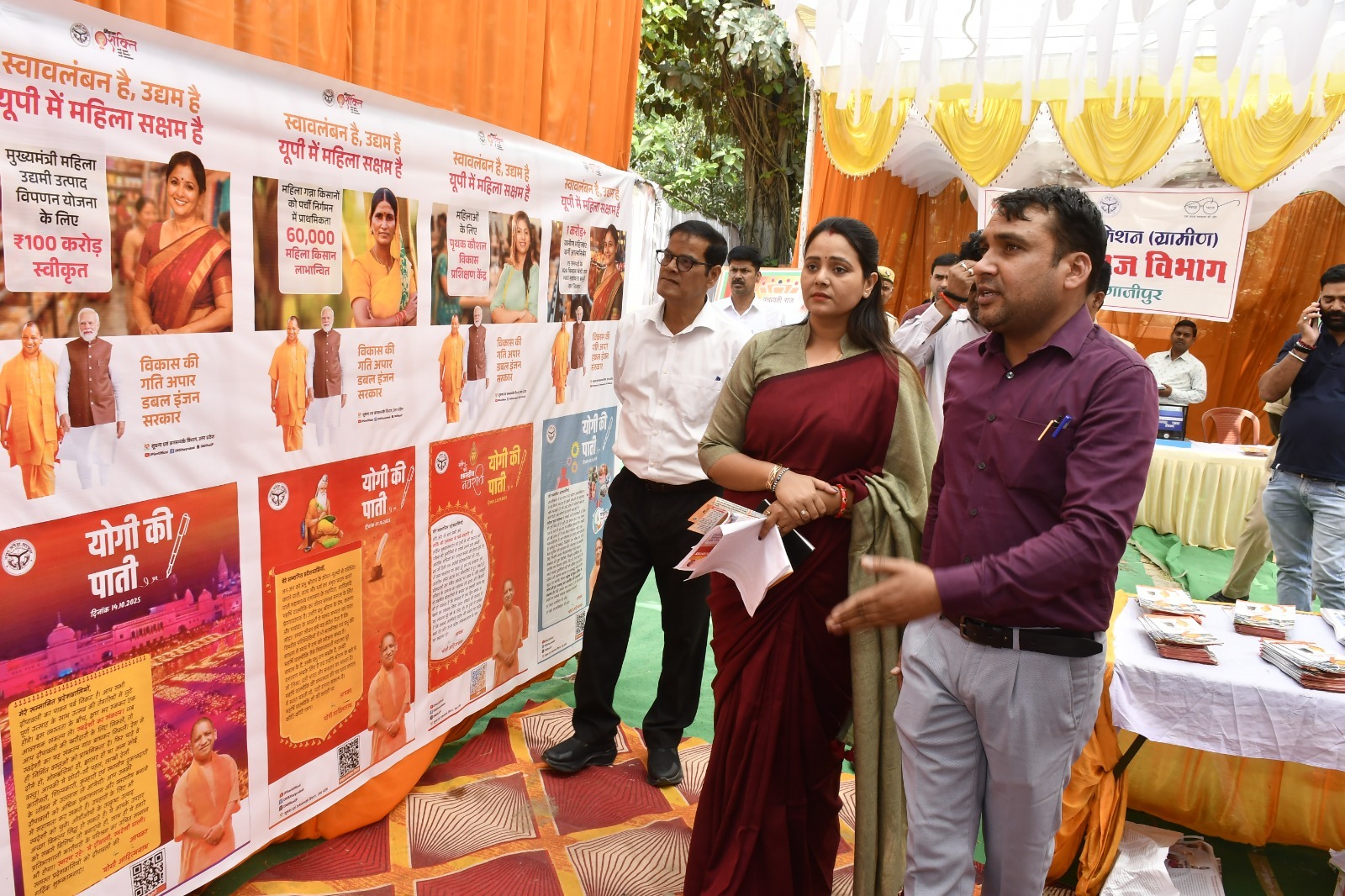 गाजीपुर – ऑडिटोरियम परिसर में उत्तर प्रदेश सरकार के “नौ निर्माण के नौ दिवस” कार्यक्रम के अंतर्गत राष्ट्रीय ग्रामीण आजीविका मिशन के तहत सरस मेला एवं मिशन शक्ति कार्यक्रम का आयोजन किया गया। कार्यक्रम की मुख्य अतिथि जिला पंचायत अध्यक्ष सपना सिंह तथा विशिष्ट अतिथि नगर पालिका अध्यक्ष सरिता अग्रवाल रहीं।