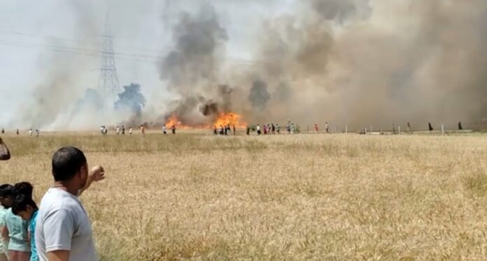 गाजीपुर – कासिमाबाद कोतवाली क्षेत्र अंतर्गत मुहम्मदपुर कुसुम गांव में बुधवार दोपहर करीब एक बजे खेतों के बीच लगे बिजली के खंभे में हुए शॉर्ट सर्किट से निकली चिंगारी ने विकराल रूप ले लिया। इस चिंगारी से आसपास खड़ी गेहूं की तैयार फसल में आग लग गई, जिसने देखते ही देखते दर्जनों खेतों को अपनी चपेट में ले लिया। तेज हवा के कारण आग तेजी से फैलती गई और करीब 100 बीघा से अधिक गेहूं की फसल जलकर पूरी तरह नष्ट हो गई।