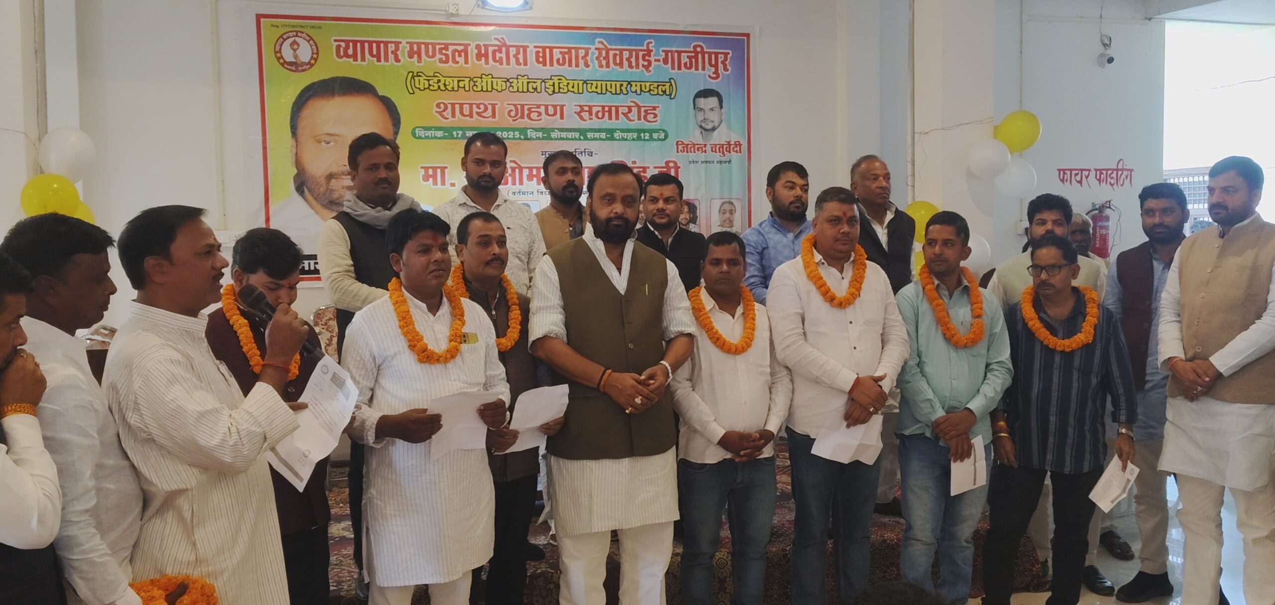 गाजीपुर। सेवराई तहसील क्षेत्र के एक निजी मैरिज हाल में फेडरेशन ऑफ ऑल इंडिया व्यापार मंडल भदौरा बाजार सेवराई के नवनियुक्त पदाधिकारियों का शपथ ग्रहण समारोह गरिमामयी माहौल में सम्पन्न हुआ। कार्यक्रम के मुख्य अतिथि जमानिया विधायक ओमप्रकाश सिंह तथा विशिष्ट अतिथि प्रदेश संगठन मंत्री जितेंद्र चतुर्वेदी रहे। कार्यक्रम की शुरुआत मुख्य अतिथियों द्वारा मां कामाख्या के चित्र पर पुष्पांजलि एवं दीप प्रज्वलन से की गई।संगठन की ओर से उपस्थित सभी पदाधिकारियों एवं गणमान्य लोगों का स्मृति चिन्ह और अंगवस्त्र देकर सम्मान किया गया। जिला उपाध्यक्ष दिनेश अकेला ने सभी मनोनीत पदाधिकारियों को पद एवं गोपनीयता की शपथ दिलाई।सभा को संबोधित करते हुए विधायक ओमप्रकाश सिंह ने कहा कि सेवराई क्षेत्र की आर्थिक और सामाजिक पहचान लगातार मजबूत होती जा रही है। उन्होंने बताया कि वर्ष 1939 में सेवराई के पूर्वजों ने सतरामगंज बाजार की स्थापना की थी और आज यह बाजार एक बड़ी पहचान के रूप में विकसित हो चुका है।प्रदेश संगठन मंत्री जितेंद्र चतुर्वेदी ने कहा कि फेडरेशन ऑफ ऑल इंडिया व्यापार मंडल एक राष्ट्रीय संगठन है, जिसका विस्तार 23 राज्यों और 600 विधानसभा क्षेत्रों तक है। उन्होंने व्यापारियों से संगठन के प्रति एकजुट होकर कार्य करने का आह्वान किया।आजमगढ़ मंडल उपाध्यक्ष अशोक गुप्ता ने कहा कि किसी भी संगठन की मजबूती इसके सदस्यों की एकजुटता में निहित है। व्यापारी अपनी समस्याएं संगठन के समक्ष रखें तथा साथ मिलकर चलें तो बड़ी से बड़ी समस्याओं का समाधान संभव है।संगठन द्वारा जिन पदाधिकारियों को मनोनीत किया गया, उनमें अध्यक्ष अशुतोष जायसवाल, उपाध्यक्ष बलवंत सिंह कुशवाहा, महामंत्री चंद्रशेखर मिश्रा, कोषाध्यक्ष सोनू वर्मा, संगठन मंत्री अजय जायसवाल, सचिव प्रथम शंकर गुप्ता, सचिव द्वितीय उमाशंकर श्रीवास्तव और मीडिया प्रभारी विवेक सिंह शामिल हैं।कार्यक्रम में ग्राम प्रधान सुभाष यादव, सतेंद्र कुमार सत्या, विपुल सिंह, पंकज गुप्ता, राकेश विश्वकर्मा सहित कई व्यापारी एवं गणमान्य लोग मौजूद रहे। कार्यक्रम की अध्यक्षता केदार शाह तथा संचालन डॉ. नीरजनंद ने किया।