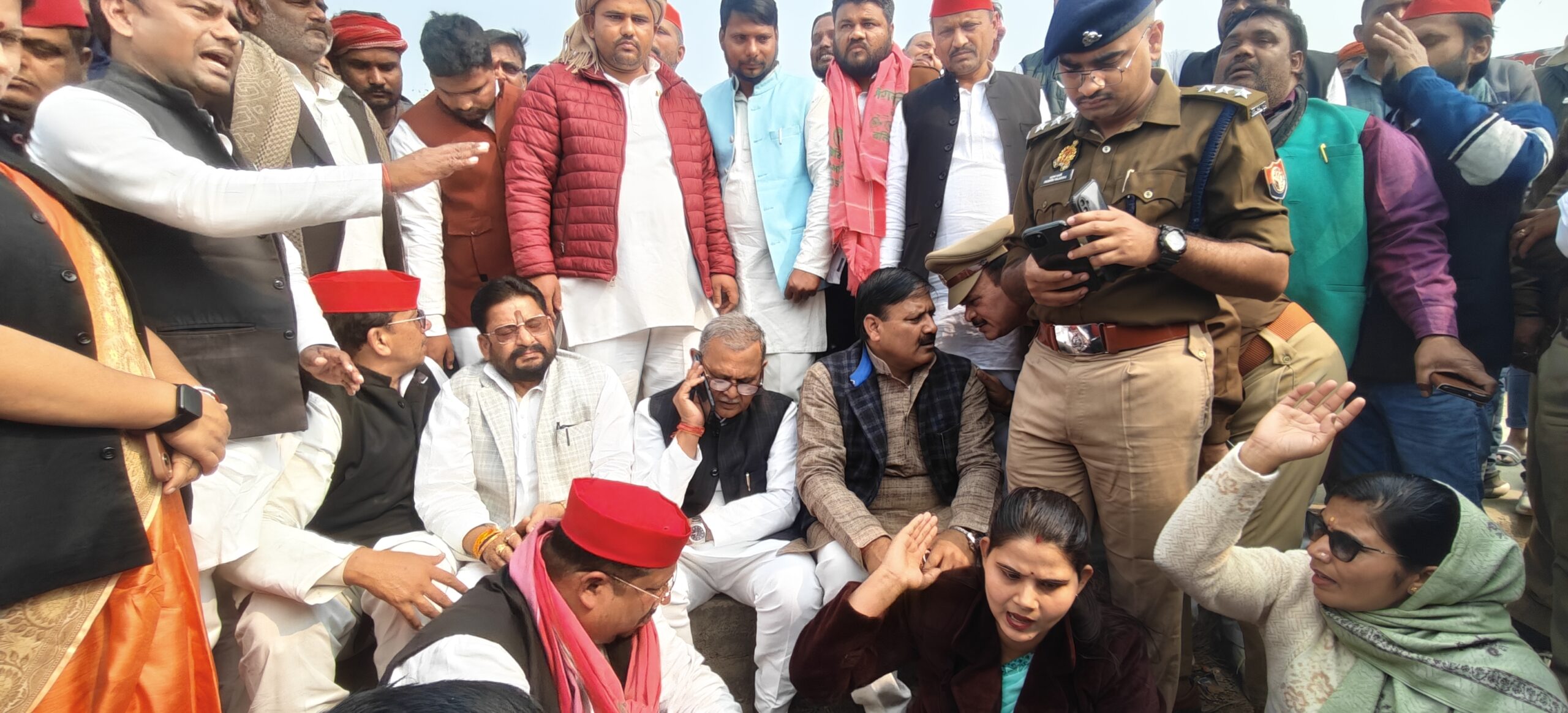 काफिला रोके जाने के बाद सांसद सनातन पाण्डेय, सपा नेता और कार्यकर्ता हाईवे पर ही धरने पर बैठ गए। यह धरना करीब तीन से चार घंटे तक चला। इस दौरान पुलिस और सपा कार्यकर्ताओं के बीच कई बार धक्का-मुक्की भी हुई, जिससे बिरनो, जंगीपुर और मरदह थानों की पुलिस के पसीने छूट गए और हाईवे पर यातायात प्रभावित रहा।
