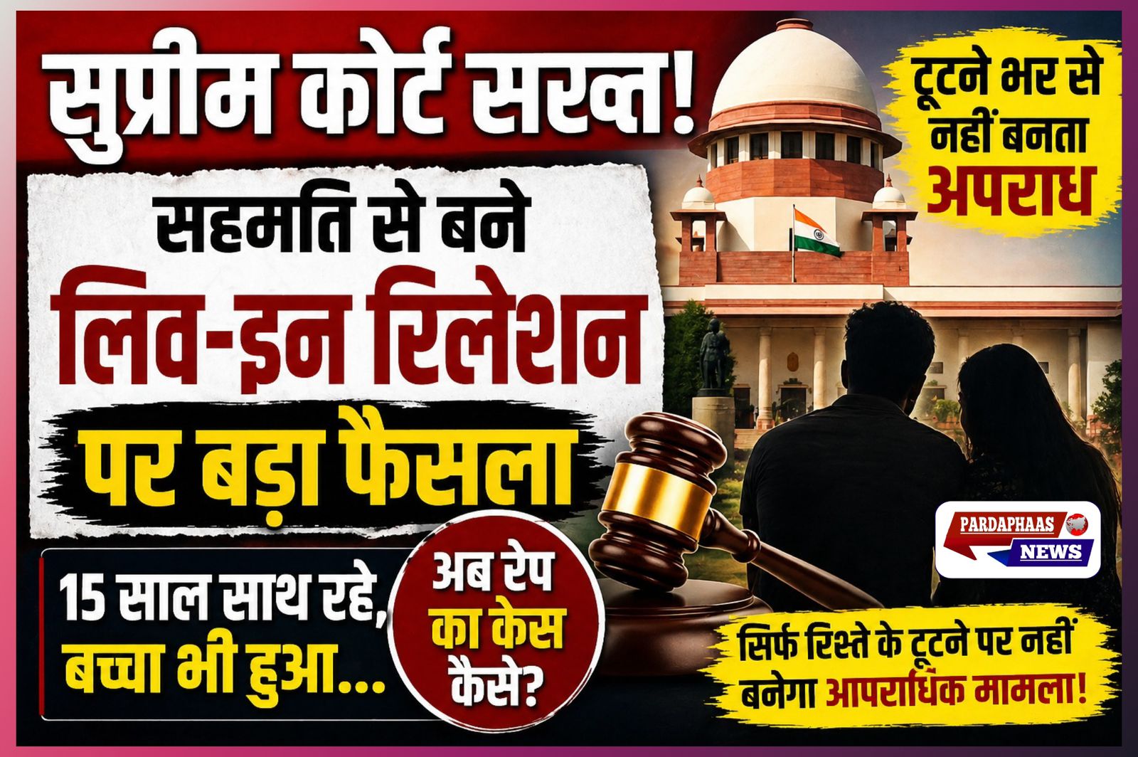सुप्रीम कोर्ट ने पूछा—15 साल साथ रहीं, बच्चा भी हुआ…फिर अपराध कहां से बन गया?