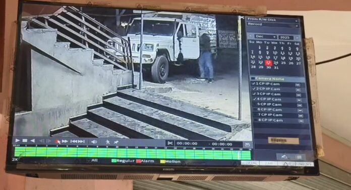 चोरों ने पहले बाइक खड़ी की, सिगरेट जलाई और फिर गमछे में ईंट बांधकर पिकअप का शीशा तोड़ा। पूरी घटना पास लगे सीसीटीवी कैमरे में कैद हो गई है।