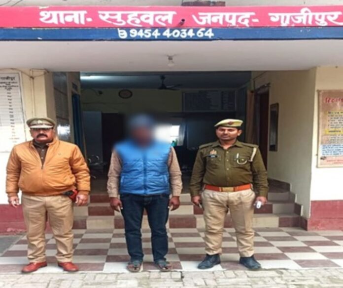 गाजीपुर – थाना सुहवल पुलिस ने अपराधियों के विरुद्ध चलाए जा रहे अभियान के तहत एक वांछित आरोपी को गिरफ्तार करने में सफलता हासिल की है। पुलिस के अनुसार दिनांक 5 फरवरी 2026 को थानाध्यक्ष सुहवल कमलेश कुमार अपनी टीम के साथ क्षेत्र में चेकिंग कर रहे थे। इसी दौरान मुखबिर की सूचना पर सोनवल रेलवे क्रॉसिंग के पास से थाना सुहवल में पंजीकृत मु0अ0सं0 18/2026 धारा 78, 352, 351(2) बीएनएस से संबंधित वांछित अभियुक्त मेराज खान को गिरफ्तार किया गया।
