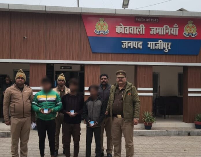 गाजीपुर। अपराध एवं अपराधियों के विरुद्ध चलाए जा रहे अभियान के तहत थाना जमानियां पुलिस को बड़ी सफलता मिली है। पुलिस टीम ने मु0अ0सं0 455/25 धारा 304(2), 317(2) बीएनएस से संबंधित तीन वांछित अभियुक्तों को गिरफ्तार किया है। यह कार्रवाई आज 20 दिसंबर 2025 को की गई।